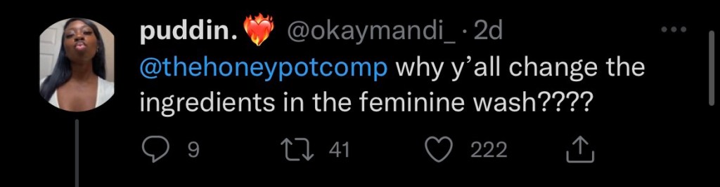 I have been a huge fan of the Honey Pot Company for quite some time and fell in love with most of their products. I was a loyal customer until recently a user on Twitter asked the company a question that made clutch my imaginary pearls!